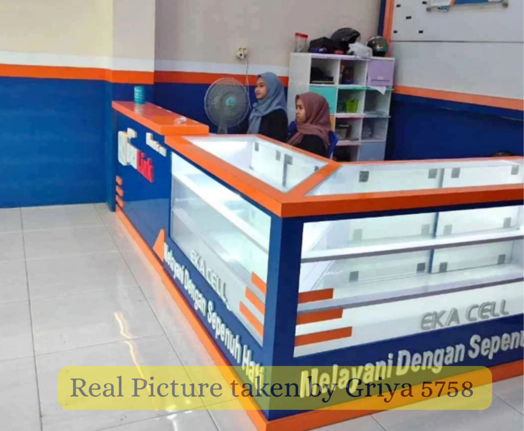 Meja kasir BRILink dengan merek dan desain custom sesuai kebutuhan usaha Anda. Produk dikirim dalam kondisi lengkap dan siap pakai, cocok untuk tampilan toko yang lebih profesional.