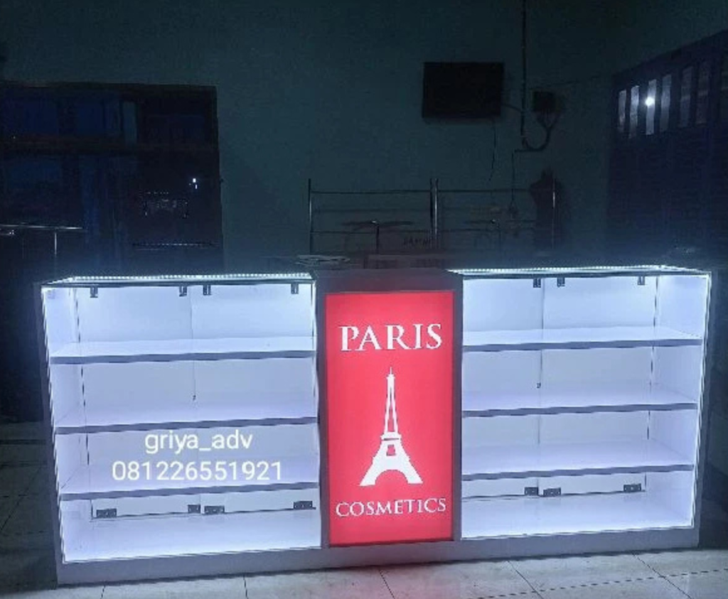 Rak display untuk kosmetik, parfum, dan tas dengan desain rapi dan kuat. Cocok untuk toko atau konter yang ingin tampilan lebih profesional.